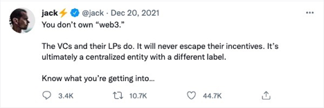 If Web3 is to become reality, decentralized and trustless crypto infrastructure must be at its core. Recently, however, the ideals of Web3 have come under questioning. Notably, Jack Dorsey tweeted this on December 20, 2021: